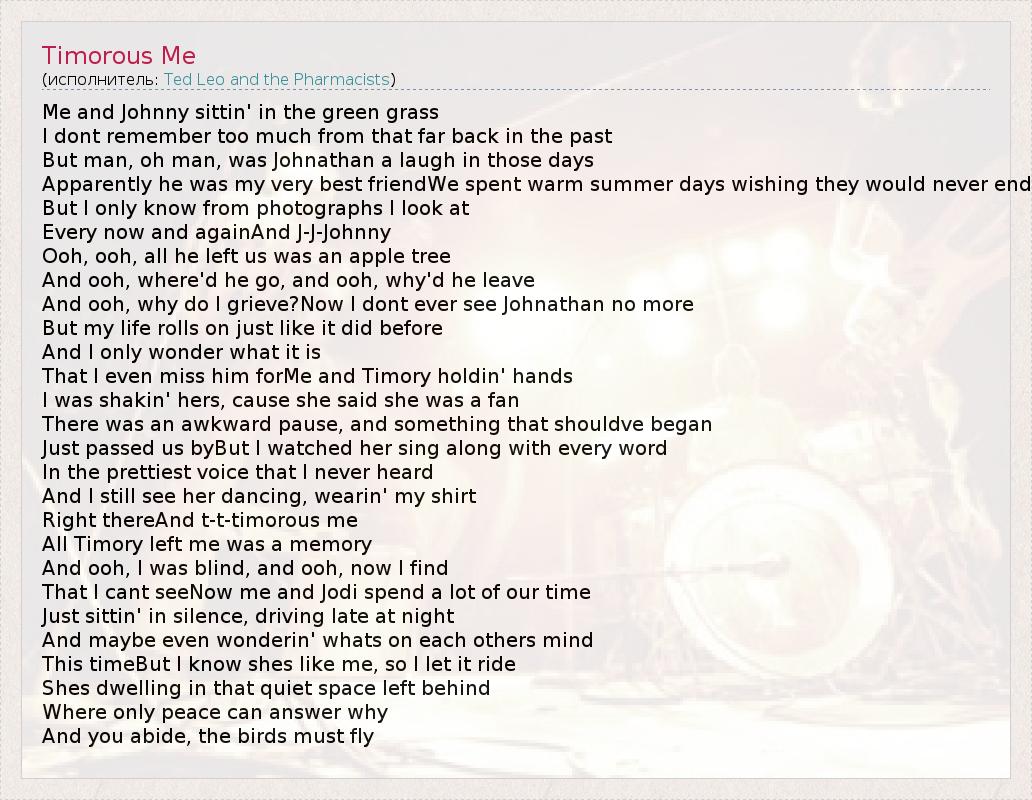 А как ты думаешь, о чем песня "Timorous Me" ?