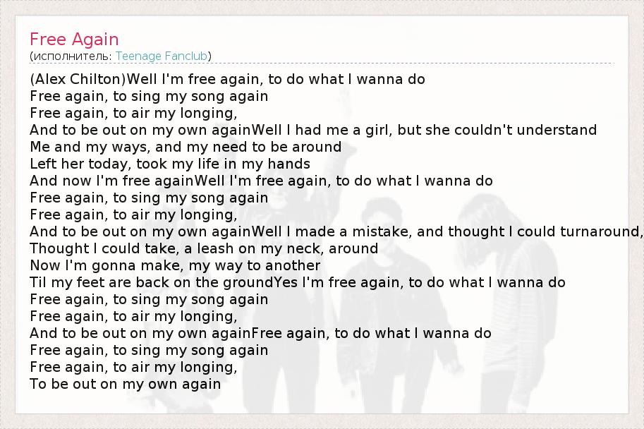 (Alex Chilton)Well I'm free again, to do what I wanna do