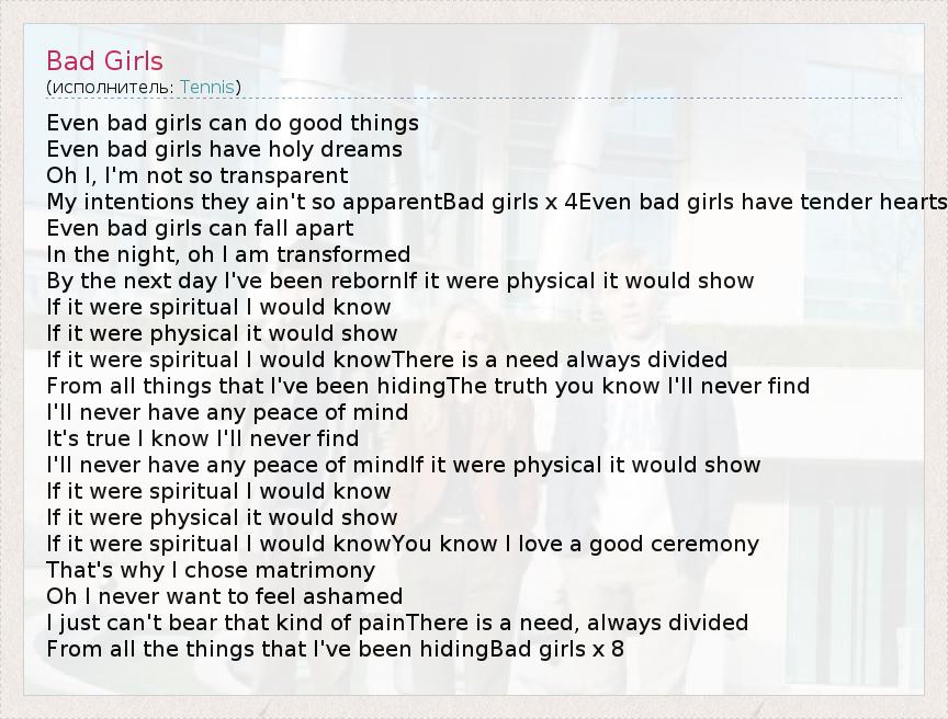 А как ты думаешь, о чем песня "Bad Girls" ?