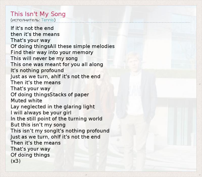 А как ты думаешь, о чем песня "This Isn't My Song" ?