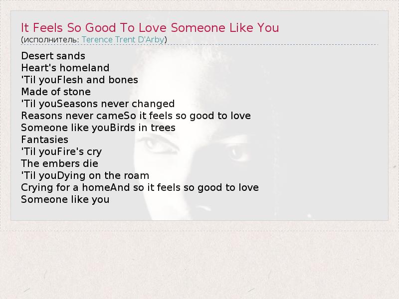 А как ты думаешь, о чем песня "It Feels So Good To Love Someone Like You" ?