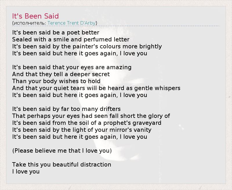 А как ты думаешь, о чем песня "It's Been Said" ?