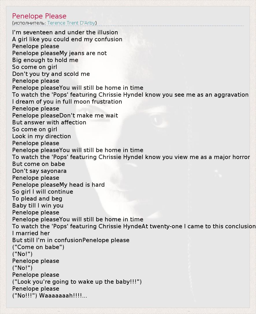 А как ты думаешь, о чем песня "Penelope Please" ?