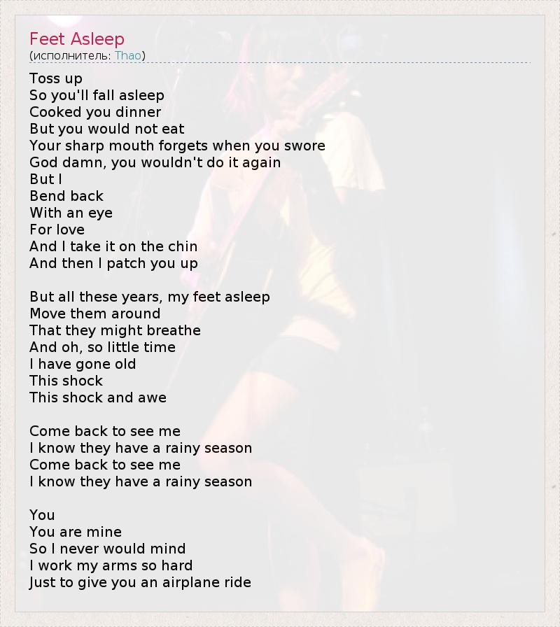 А как ты думаешь, о чем песня "Feet Asleep" ?