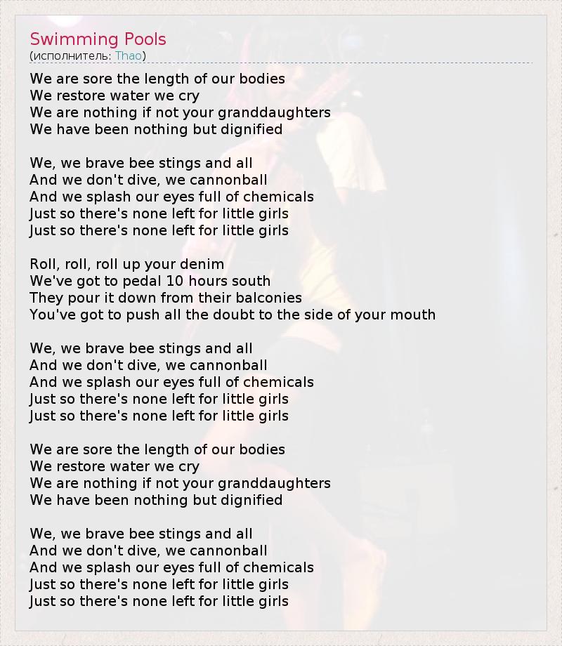 А как ты думаешь, о чем песня "Swimming Pools" ?