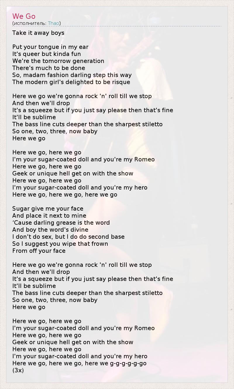 А как ты думаешь, о чем песня "We Go" ?
