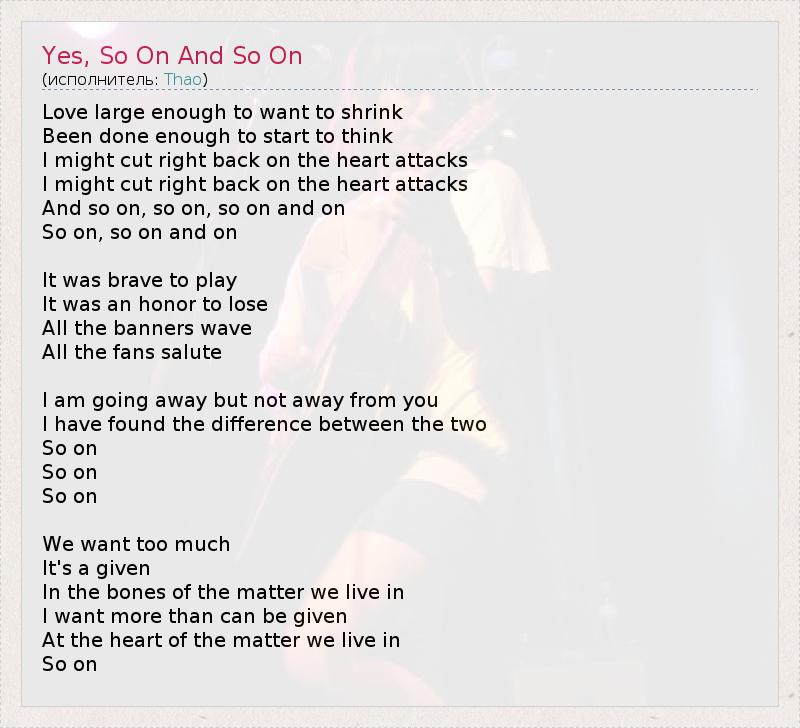 А как ты думаешь, о чем песня "Yes, So On And So On" ?