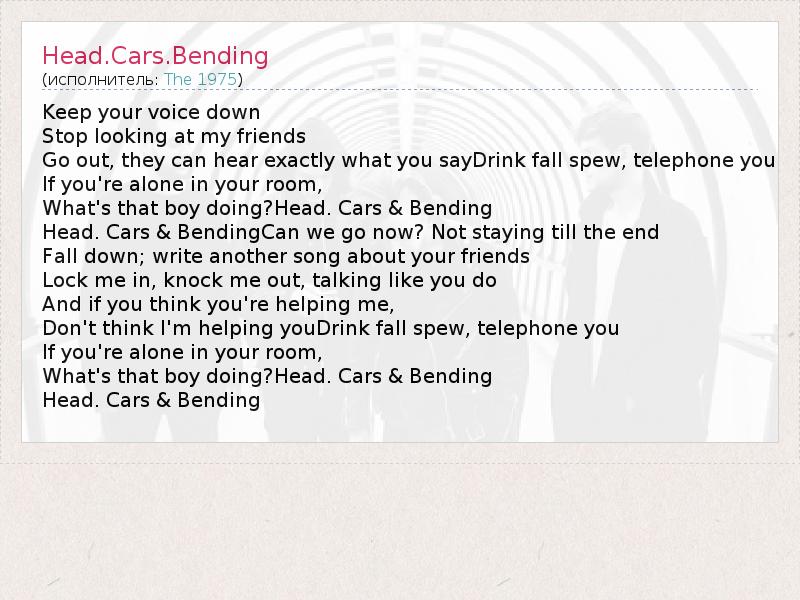 А как ты думаешь, о чем песня "Head.Cars.Bending" ?