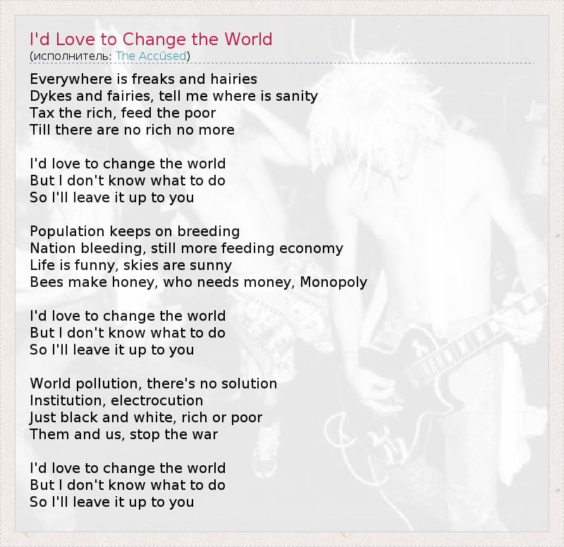 А как ты думаешь, о чем песня "I'd Love to Change the World" ?