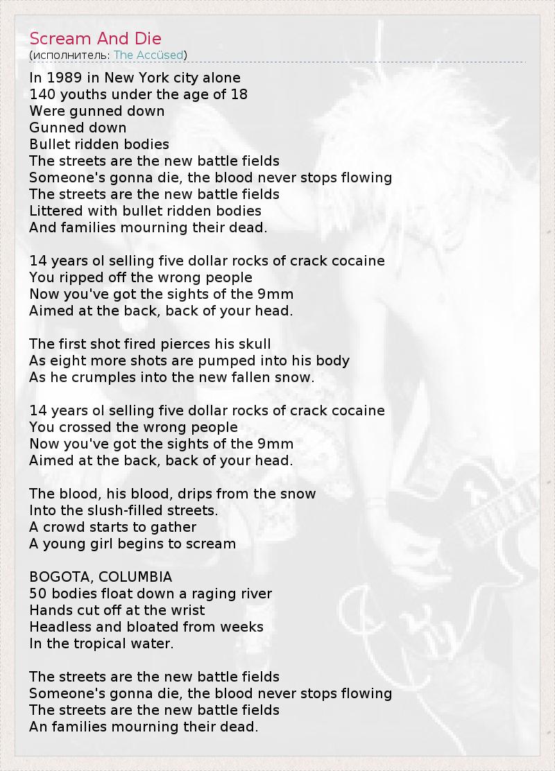 А как ты думаешь, о чем песня "Scream And Die" ?