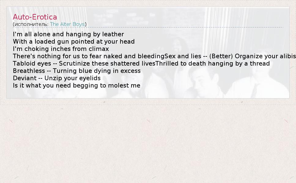 А как ты думаешь, о чем песня "Auto-Erotica" ?
