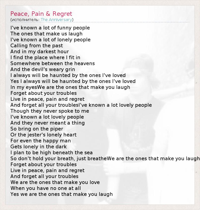 А как ты думаешь, о чем песня "Peace, Pain & Regret" ?