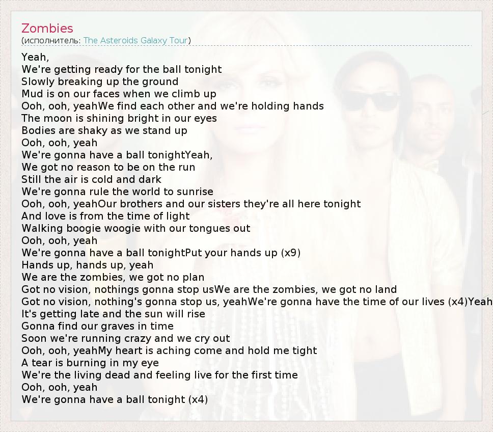 Got no vision, nothings gonna stop usWe are the zombies, we got no land