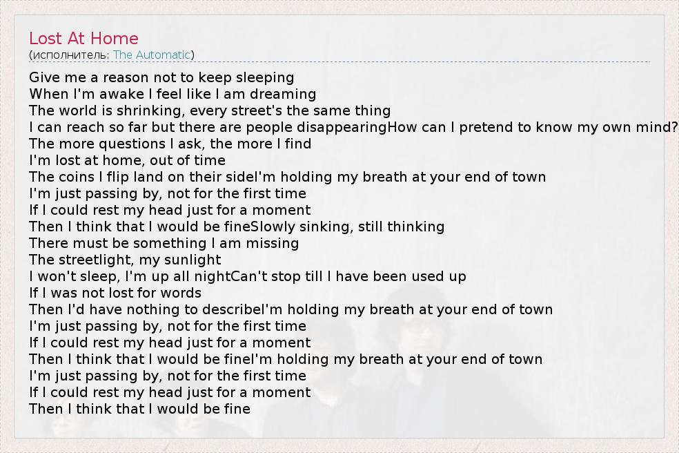 А как ты думаешь, о чем песня "Lost At Home" ?