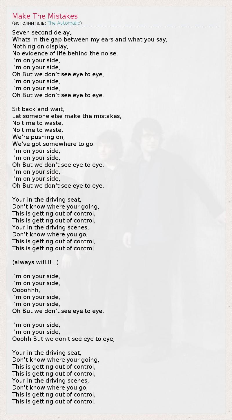А как ты думаешь, о чем песня "Make The Mistakes" ?