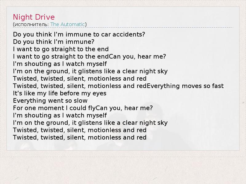 Twisted, twisted, silent, motionless and redEverything moves so fast
