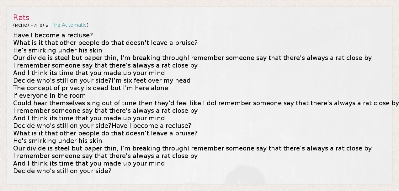 А как ты думаешь, о чем песня "Rats" ?