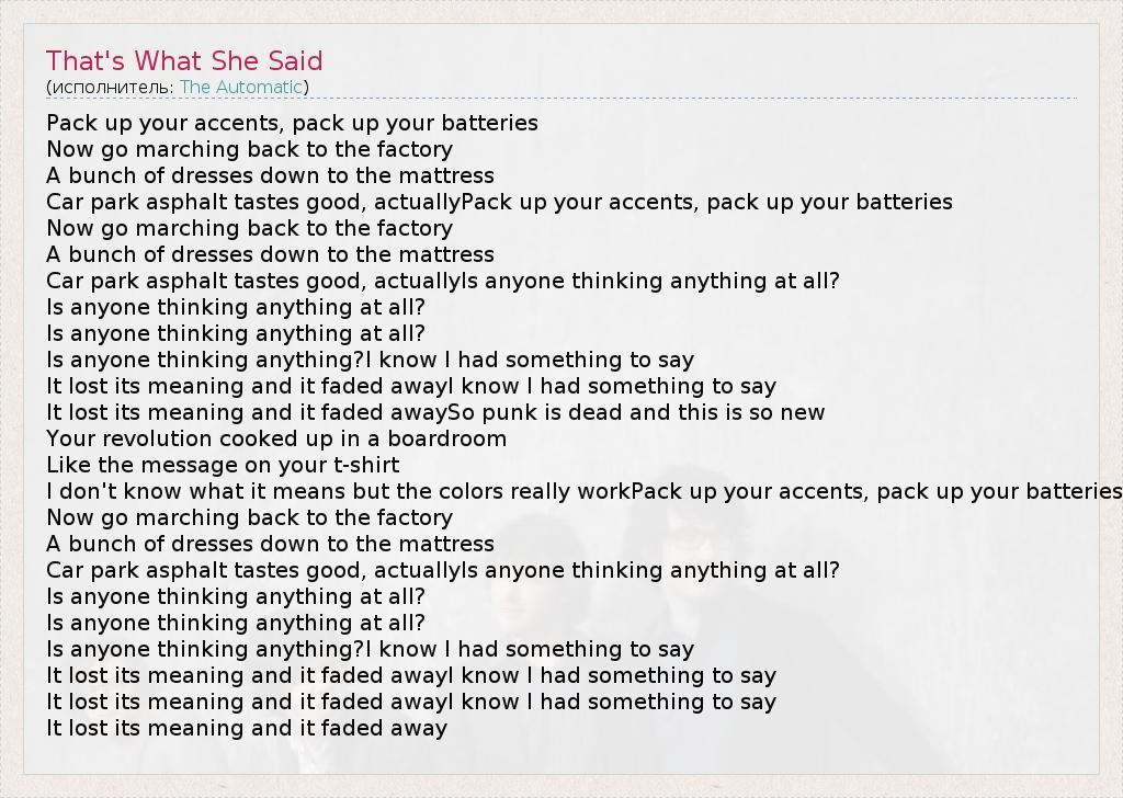 А как ты думаешь, о чем песня "That's What She Said" ?