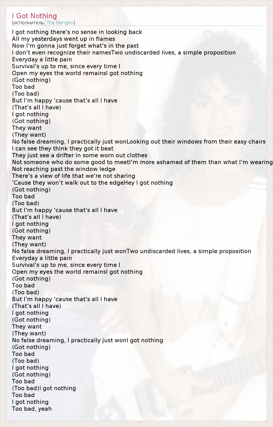 А как ты думаешь, о чем песня "I Got Nothing" ?