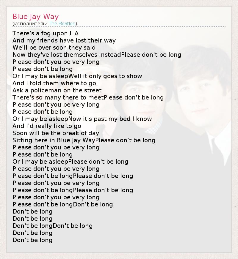 А как ты думаешь, о чем песня "Blue Jay Way" ?