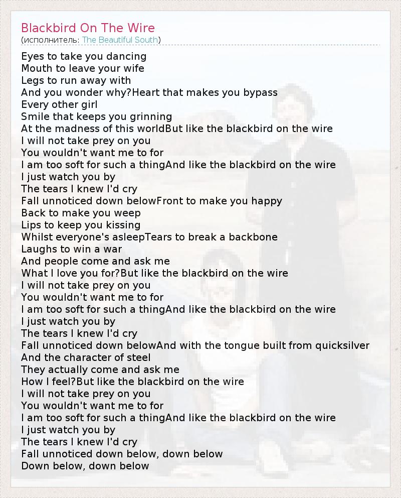 А как ты думаешь, о чем песня "Blackbird On The Wire" ?