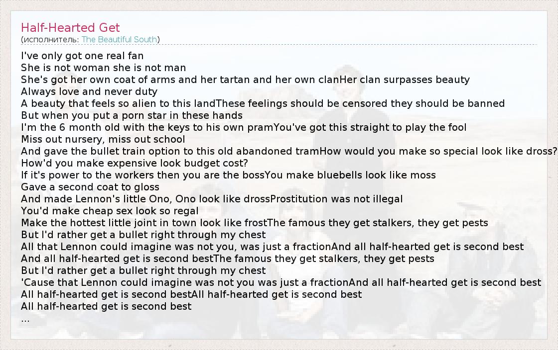 А как ты думаешь, о чем песня "Half-Hearted Get" ?