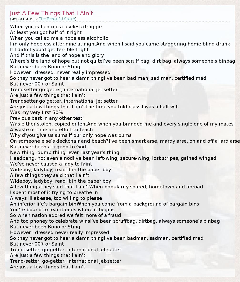 А как ты думаешь, о чем песня "Just A Few Things That I Ain't" ?