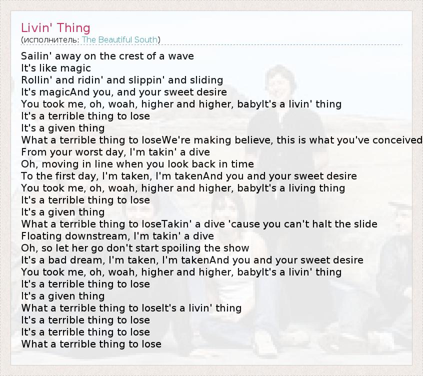А как ты думаешь, о чем песня "Livin' Thing" ?