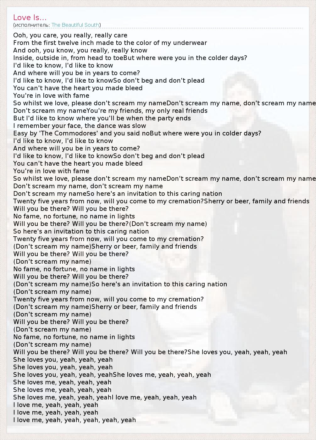 So whilst we love, please don't scream my nameDon't scream my name, don't scream my name