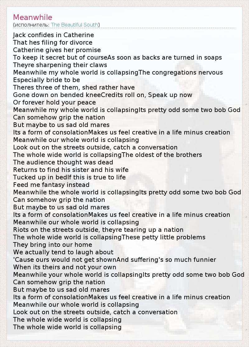 А как ты думаешь, о чем песня "Meanwhile" ?