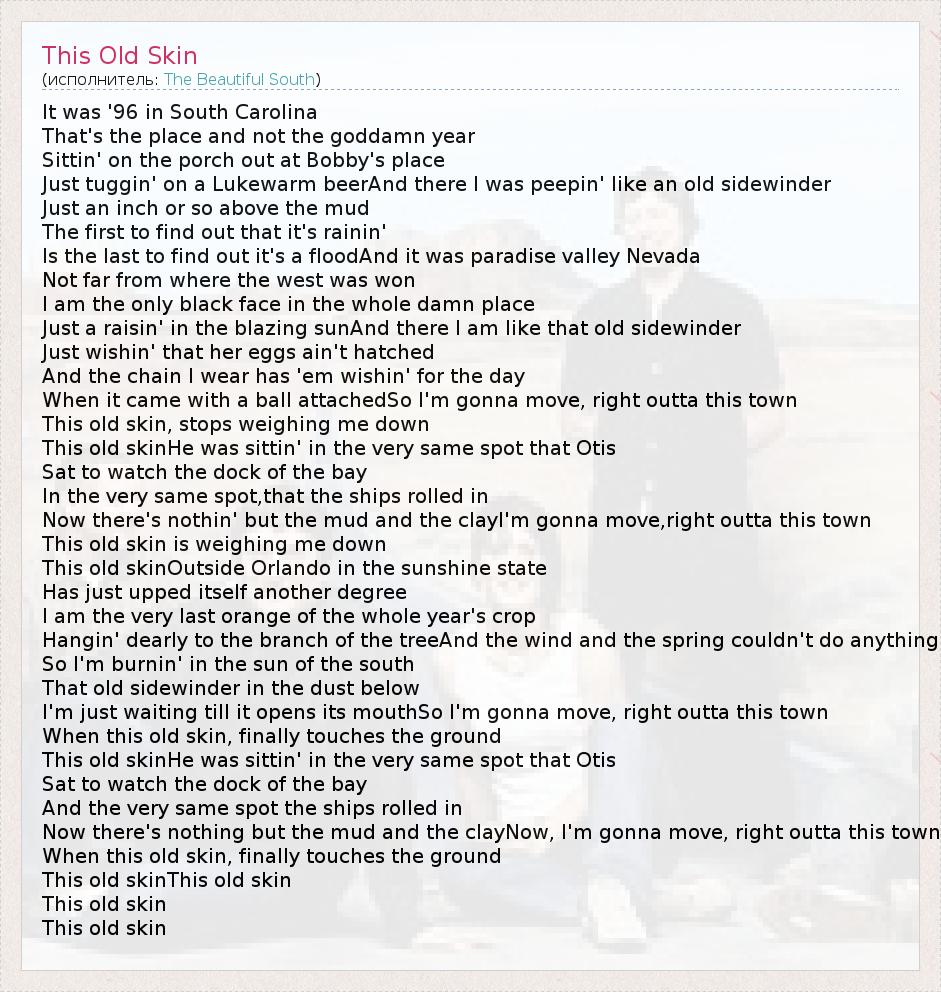 А как ты думаешь, о чем песня "This Old Skin" ?