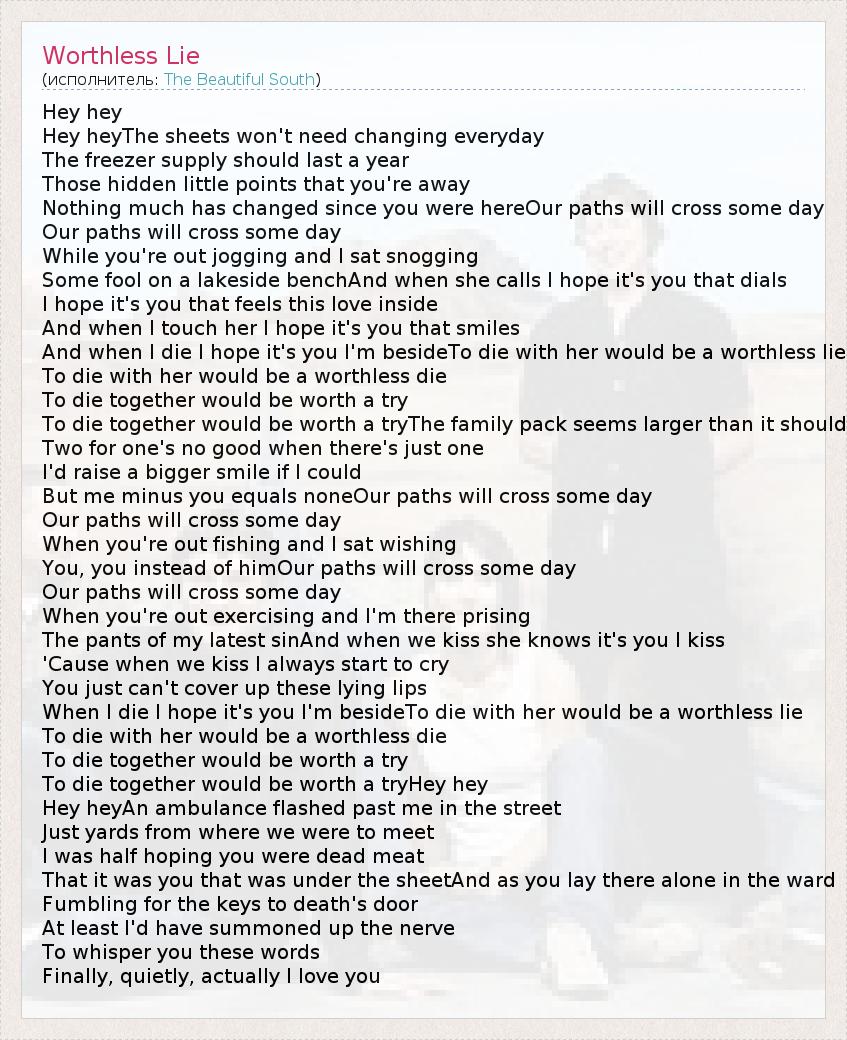 А как ты думаешь, о чем песня "Worthless Lie" ?