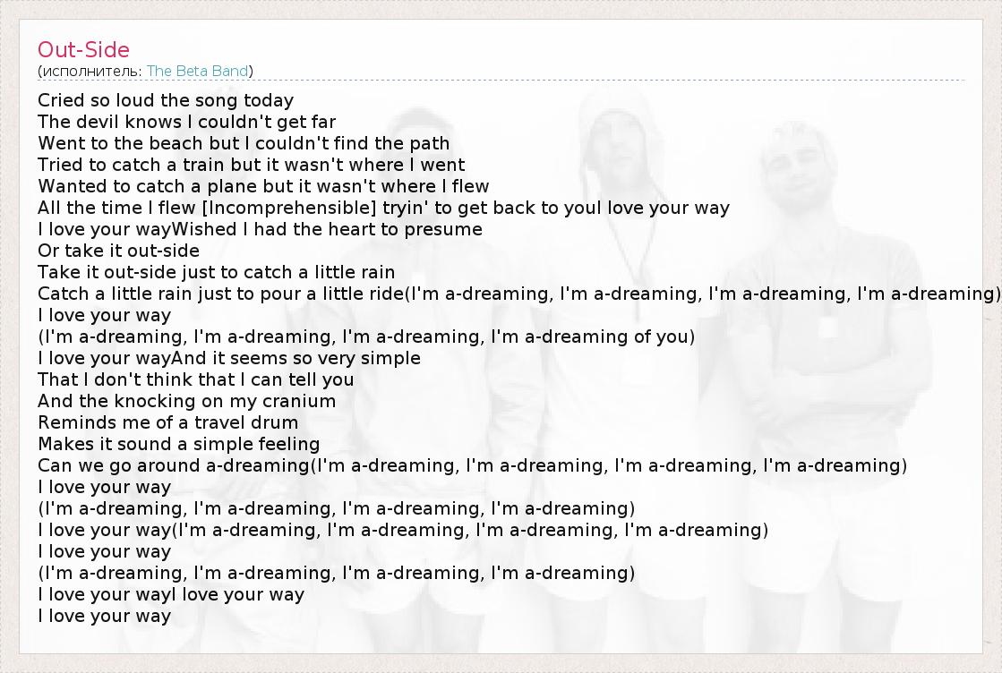 I love your way(I'm a-dreaming, I'm a-dreaming, I'm a-dreaming, I'm a-dreaming)