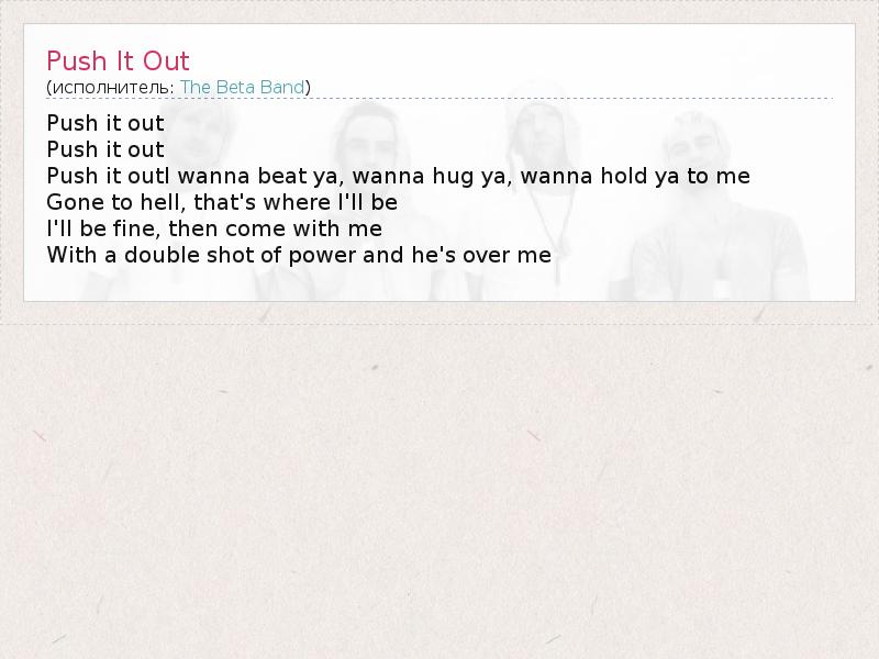А как ты думаешь, о чем песня "Push It Out" ?