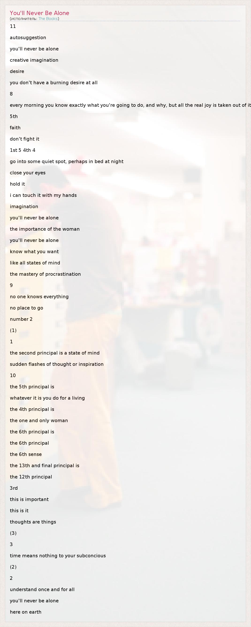 ГлавнаяИсполнителиThe BooksYou'll Never Be Alone