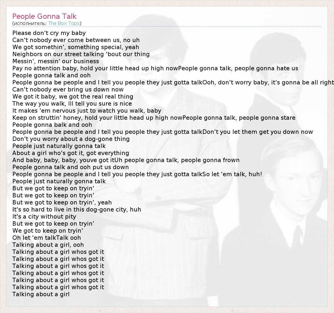 А как ты думаешь, о чем песня "People Gonna Talk" ?