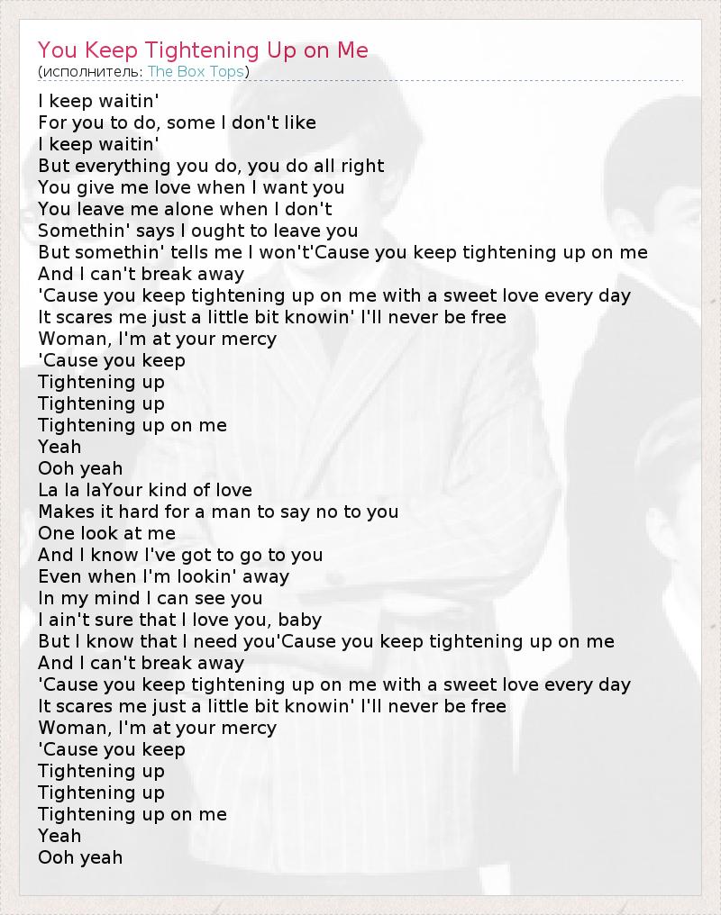 А как ты думаешь, о чем песня "You Keep Tightening Up on Me" ?