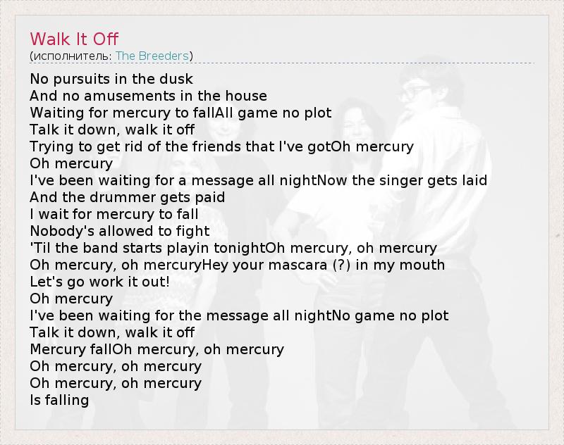 Oh mercury, oh mercuryHey your mascara (?) in my mouth