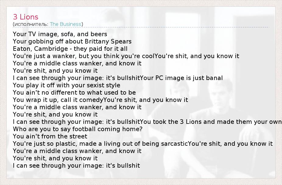 А как ты думаешь, о чем песня "3 Lions" ?