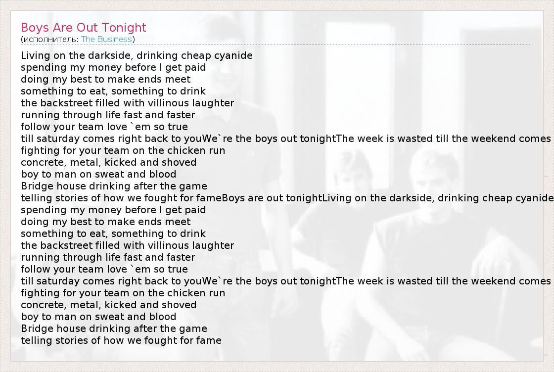 А как ты думаешь, о чем песня "Boys Are Out Tonight" ?