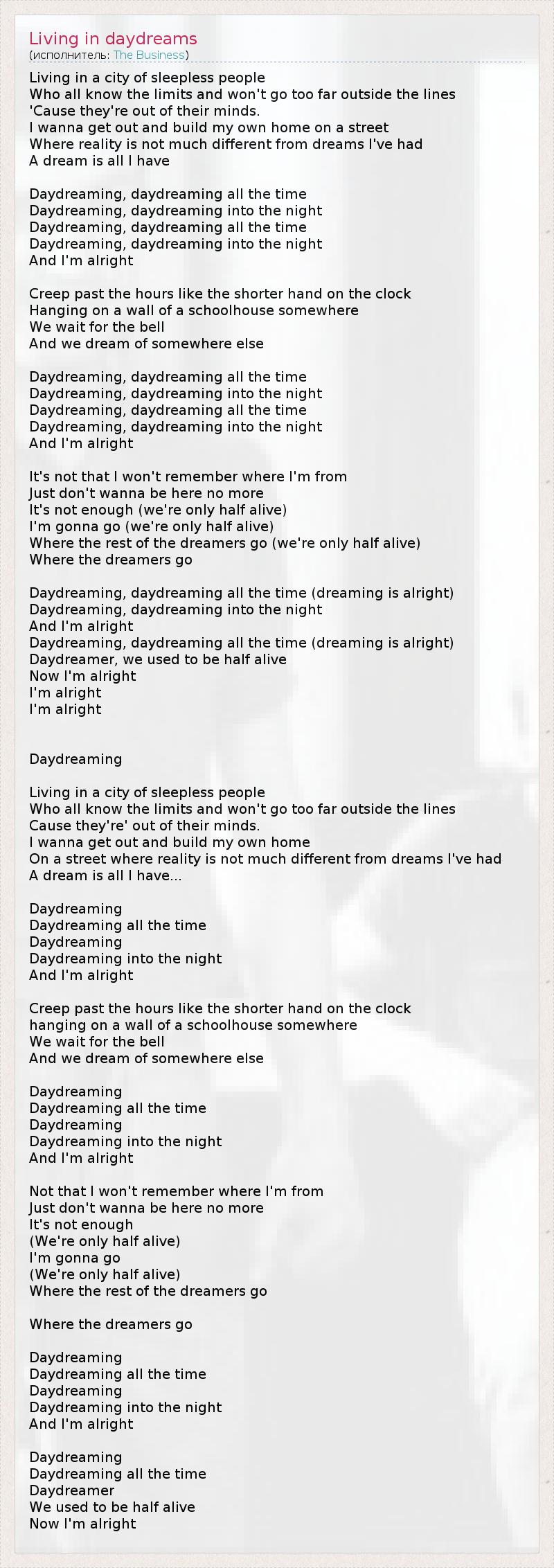 А как ты думаешь, о чем песня "Living in daydreams" ?