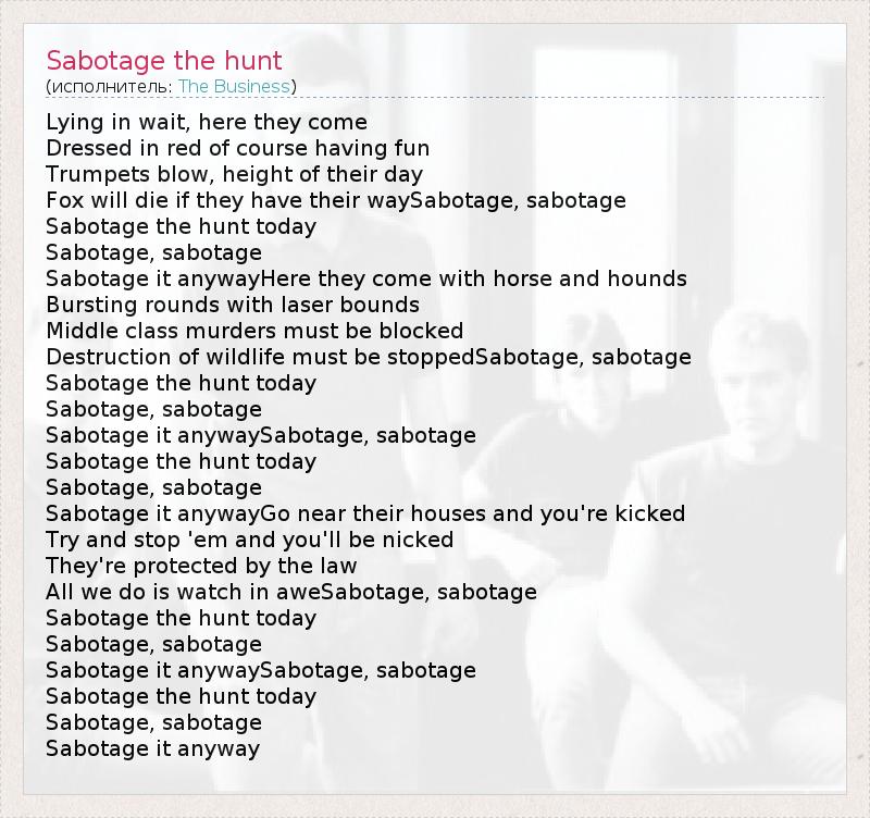 А как ты думаешь, о чем песня "Sabotage the hunt" ?
