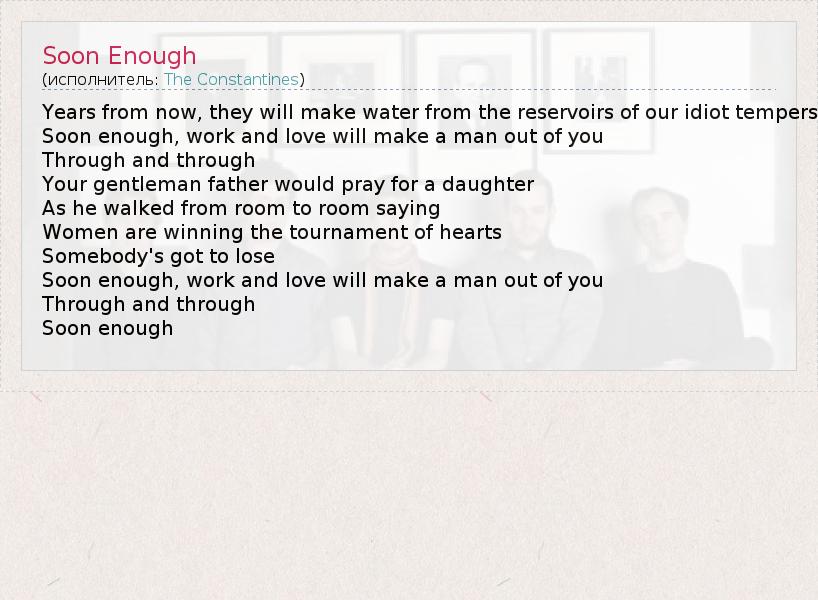 А как ты думаешь, о чем песня "Soon Enough" ?