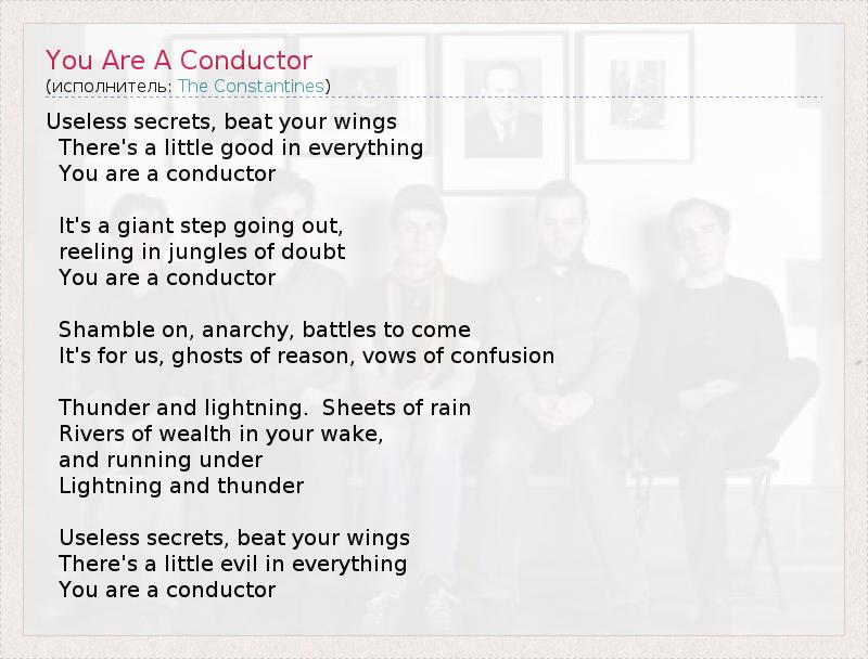 А как ты думаешь, о чем песня "You Are A Conductor" ?
