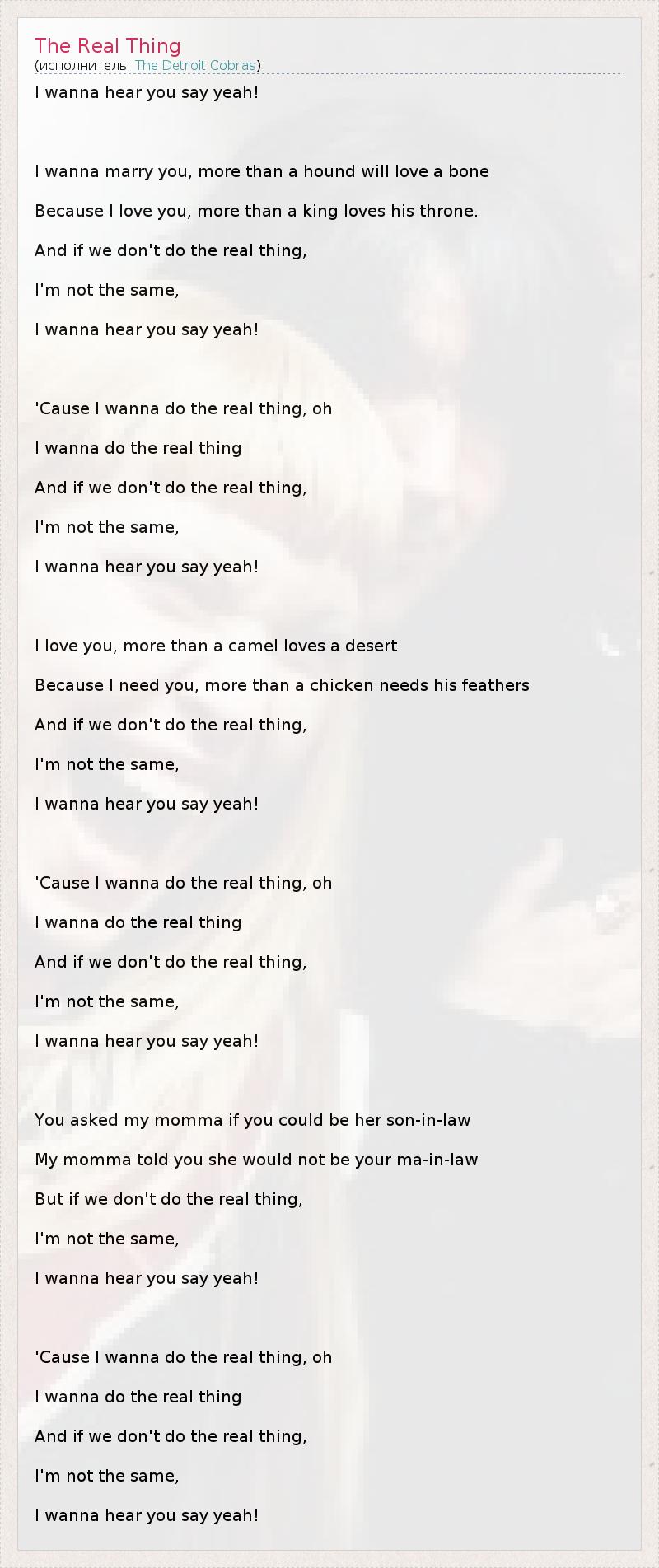 А как ты думаешь, о чем песня "The Real Thing" ?