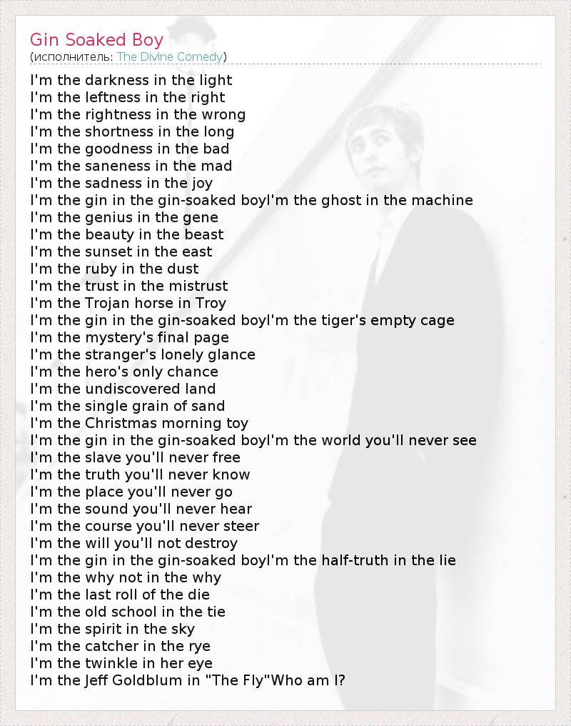 I'm the gin in the gin-soaked boyI'm the ghost in the machine
