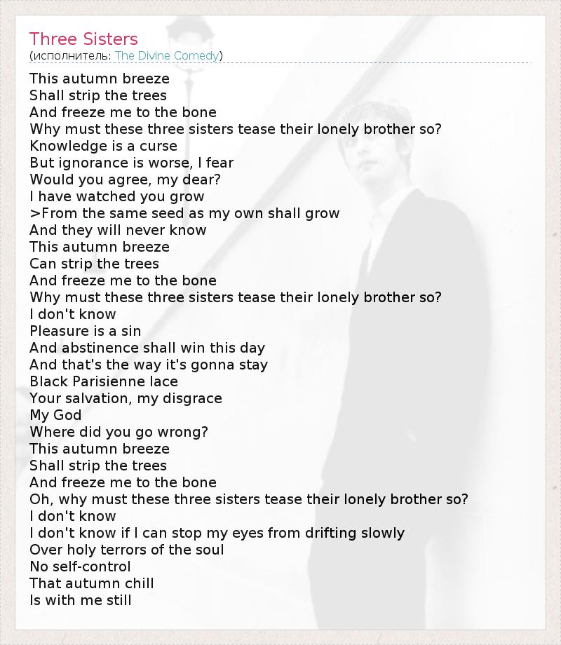 А как ты думаешь, о чем песня "Three Sisters" ?