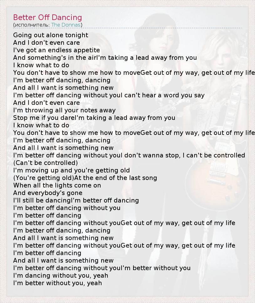 А как ты думаешь, о чем песня "Better Off Dancing" ?