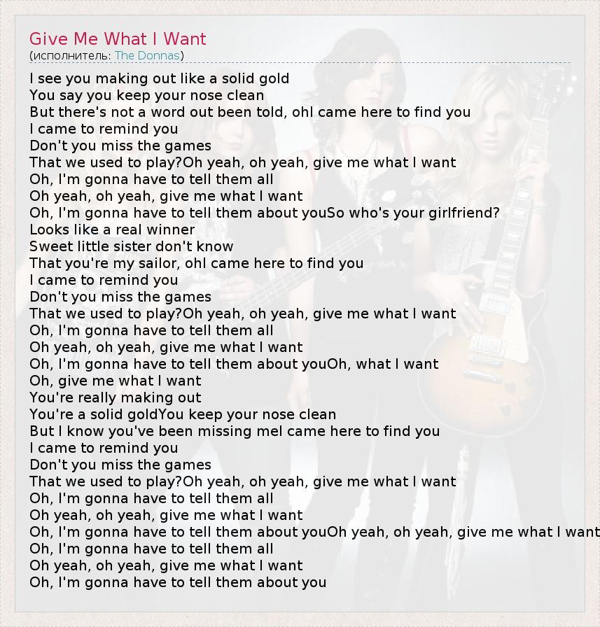 А как ты думаешь, о чем песня "Give Me What I Want" ?