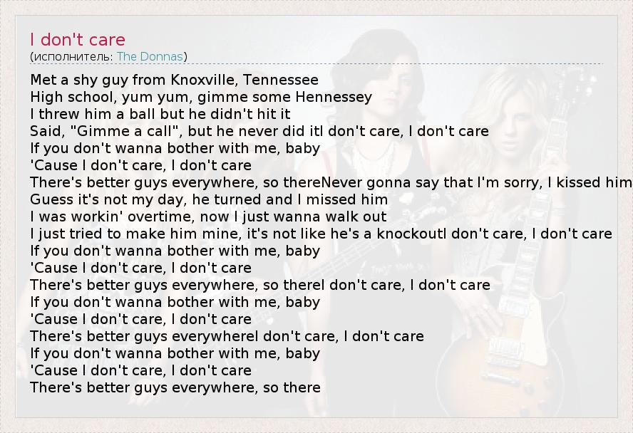 Said, "Gimme a call", but he never did itI don't care, I don't care